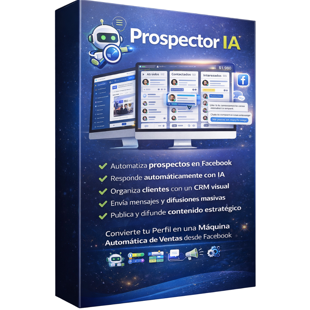 Prospector IA es el sistema todo-en-uno que convierte tu perfil de Facebook en un centro automático de ventas que:
