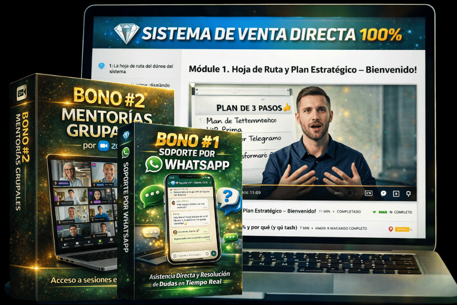 SISTEMA DE VENTA DIRECTA 100% es un entrenamiento práctico y estratégico diseñado para las personas que desean vender productos digitales todos los días sin depender de plataformas complicadas, comisiones altas ni embudos complejos.